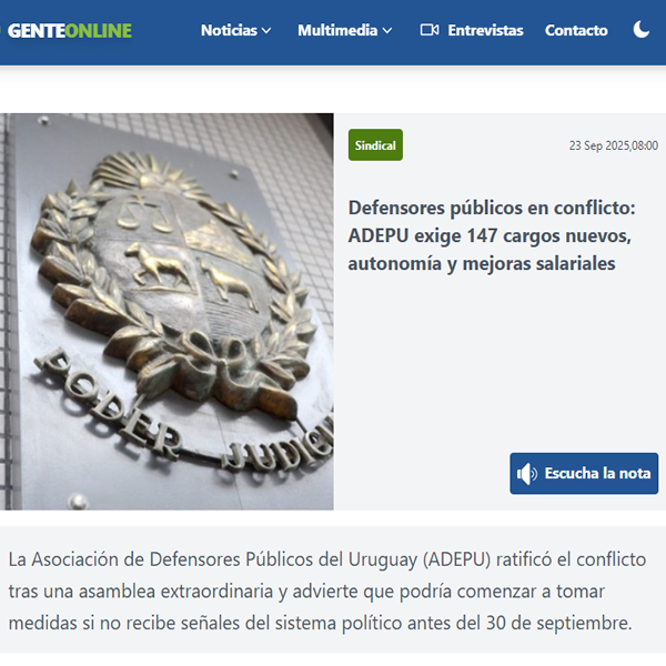 El lunes 22 de setiembre, la Dra. Lucía Long, Secretaria General de ADEPU, participó del programa de radio FM GENTE.